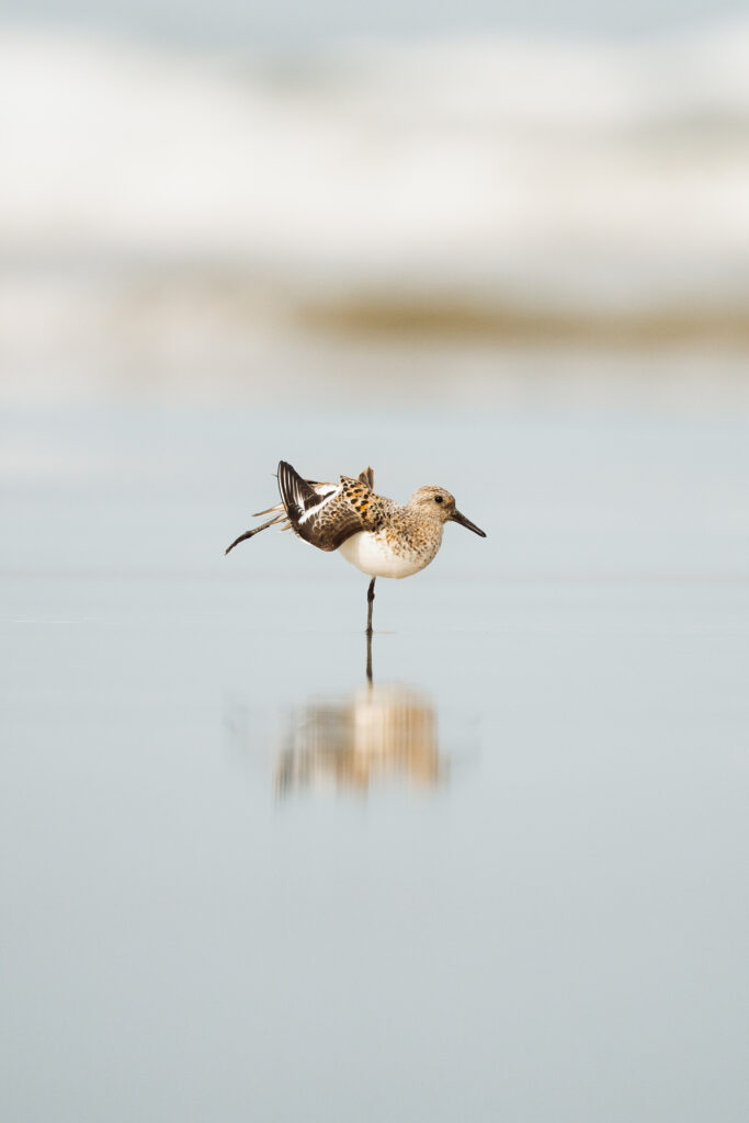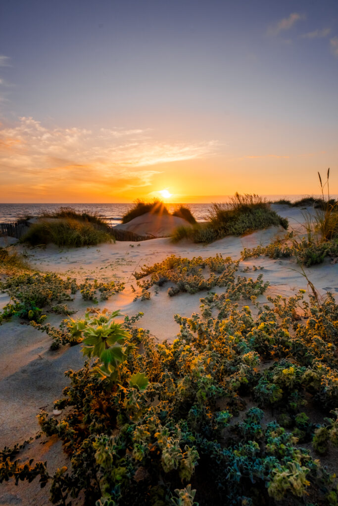Um por do sol num dos primeiros dias de verão onde as marcas deixadas pela maré baixa dão lugar a um primeiro plano que imprime profundidade à paisagem.